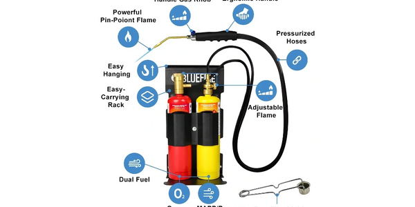 BLUEFIRE HZ-7150 is a Professional Grade High Heat Cutting Torch featured with Duel Fuel Feeds fittings and hoses for Oxygen and MAPP/MAP PRO/Propane and Pin Point Tip Flame nozzle.